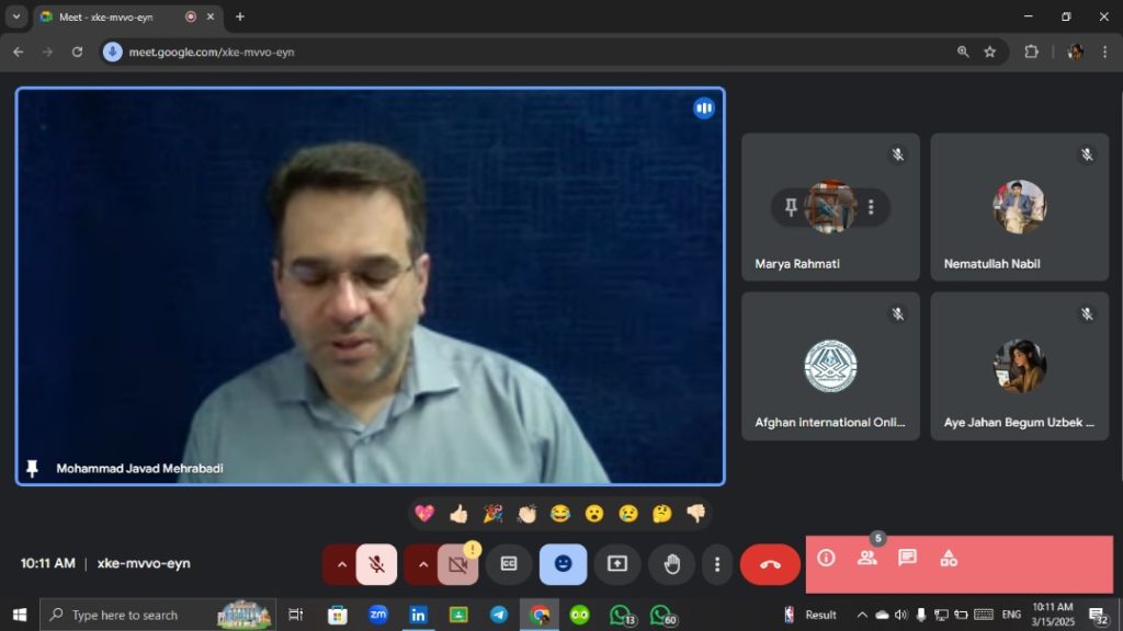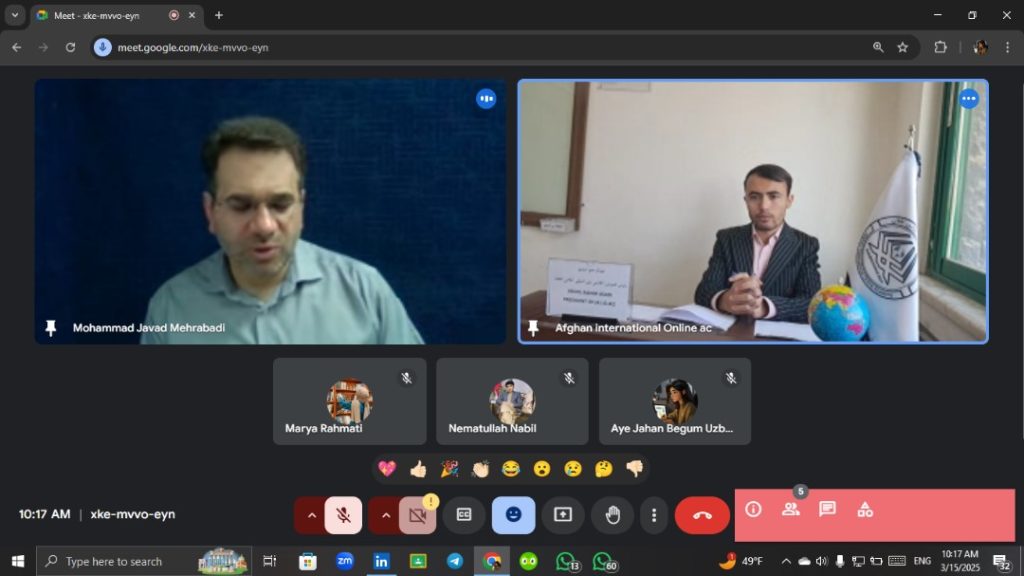 در این جلسه، استاد عبدالرحیم اسدی، رئیس عمومی آکادمی بینالمللی آنلاین افغان (AIOAC) و دکتر جواد مهرآبادی، رئیس مؤسسه استارت آباد قم، درباره همکاریهای مشترک آموزشی و مهارتافزایی گفتوگو کردند.
